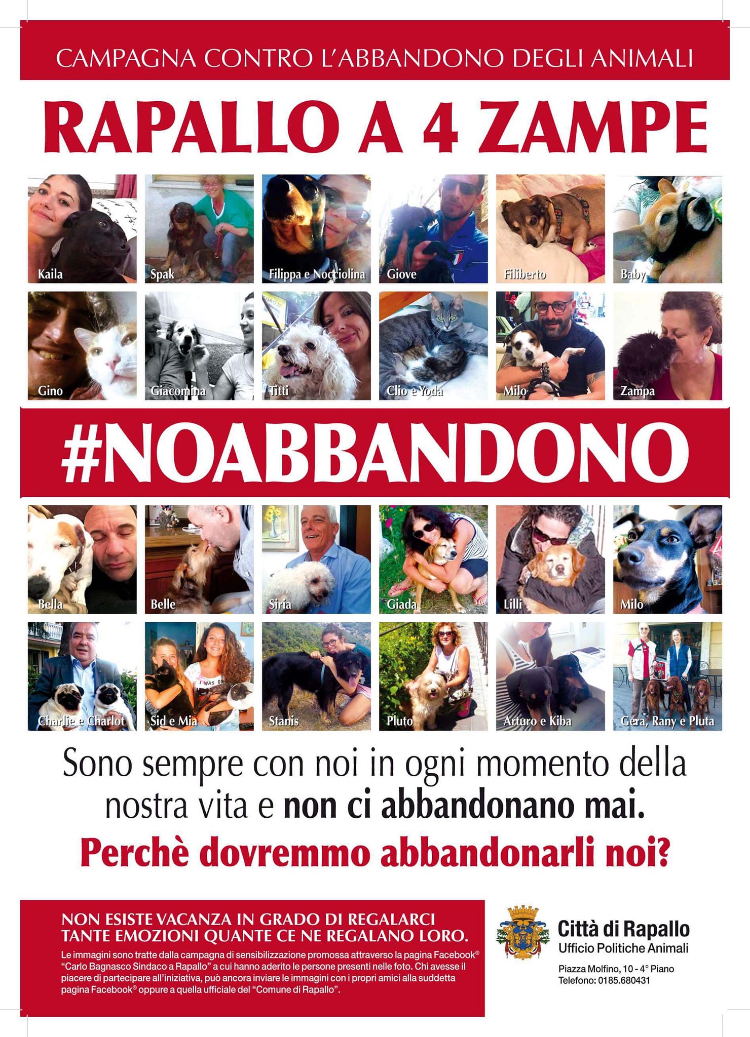 Le immagini presenti sui manifesti e le cartoline distribuite in città sono le stesse che le persone aderenti all’iniziativa hanno inviato nelle ultime settimane alla pagina Facebook “Carlo Bagnasco sindaco a Rapallo”. «È un piccolo gesto – commenta il primo cittadino – ma importante e significativo Come spesso ribadito, io stesso sono molto attento all’argomento politiche animali e spero che questa campagna possa contribuire a sensibilizzare grandi e piccini per scongiurare un tristissimo fenomeno, quello dell’abbandono di animali domestici, purtroppo ancora frequente soprattutto nei periodi di vacanze estive».