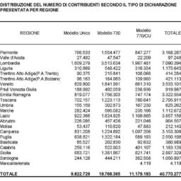 Il numero di contribuenti è di 1.175.645 di cui oltre 500 mila con dichiarazione 730, 316 mila con modello 770/certificazione unica, 310 mila con modello unico.