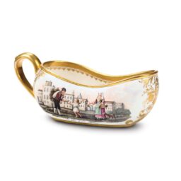Decisamente interessanti anche un bourdaloue di Napoli (Fabbrica Poulard Prad, 1810 – 1815) unico nel suo genere e un gruppo di Meissen con arlecchino modellato da Kaendler verso il 1740.