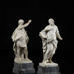 Eccezionali anche la Madonna del Rosario, in legno dorato, argentato e policromato, attribuita ad Anton Maria Maragliano e bottega (Genova, inizi del XVIII secolo) e la coppia di sculture in marmo bianco dell’arte Barocca Romana della seconda metà del XVII secolo raffiguranti San Giovanni Battista e San Giovanni Evangelista.