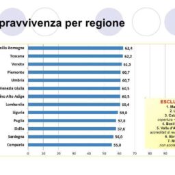 A causare l’aumento dei casi – spiega Carlotta Buzzoni, vicepresidente Airtum – è anche l’aumento dell’età media, che in Liguria è di 48,3 anni contro i 44,4 dell’Italia. Proprio per questo motivo sono in aumento i tumori alla prostata (950 nuovi casi stimati nel 2017). L’alto tasso di vecchiaia in Liguria spiega perché il tasso di sopravvivenza a 5 anni è leggermente inferiore alla media italiana: 61% per le donne (63% in Italia) e 51% per gli uomini (54% in Italia), ma per i cinque tumori a prognosi migliore i risultati sono sovrapponibili e in alcuni casi migliori: testicolo (97% contro il 91% in Italia), tiroide (93%), prostata (90% contro il 91% in Italia), melanoma (88% contro l’87% in Italia) e mammella (87%). «La differenza tra un giovane colpito da un tumore e un anziano – spiega Lucia Del Mastro, del direttivo nazionale Aiom e responsabile della Breast Unit del San Martino – non sta tanto nell’aggressività del tumore, ma soprattutto nella gestione del paziente. Valutiamo una sorta di “scala delle fragilità” perché alcuni trattamenti non si possono fare con persone anziane».