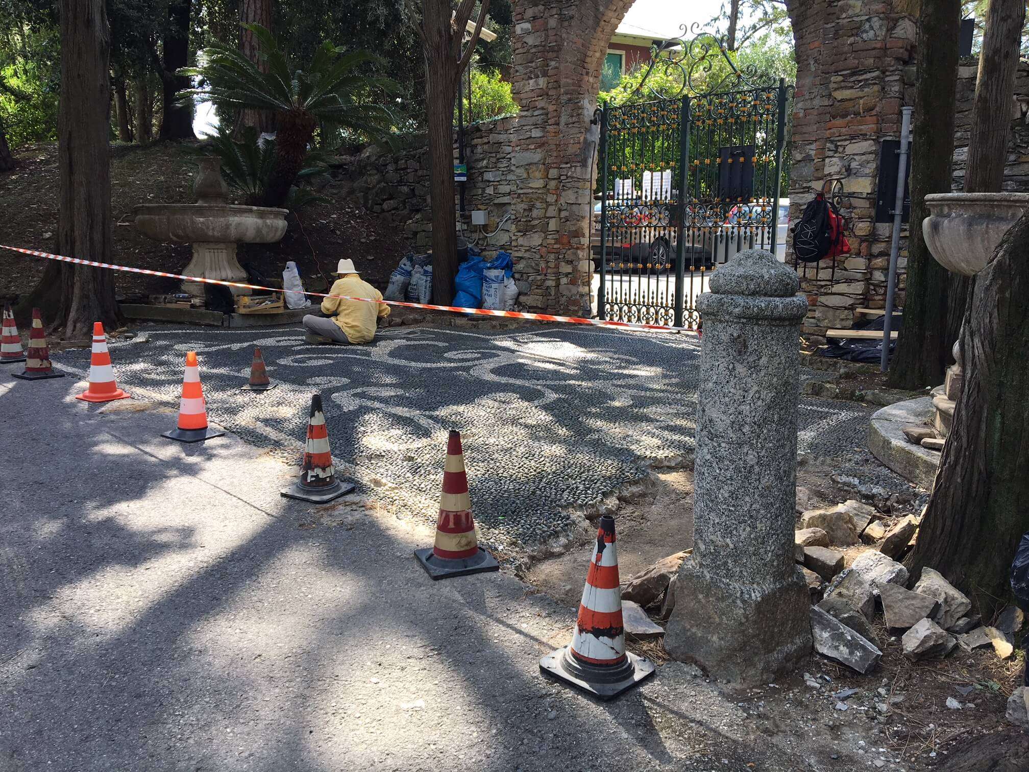 Il risseu dell’ingresso da via San Francesco di Villa Durazzo a Santa Margherita Ligure è in fase di recupero. Una volta terminati i lavori per continuare a garantire l’accesso carrabile, il risseu nelle occasioni di apertura del cancello, sarà protetto con un apposito tappeto.