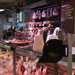 Al piano superiore trovano invece spazio i banchi assistiti delle carni e della gastronomia, quest’ultimo arricchito da un banco caldo per la vendita dei polli allo spiedo e da un angolo per la focaccia e la pizza al taglio, il distributore di pane fresco sfuso e un’ampia proposta di generi vari.