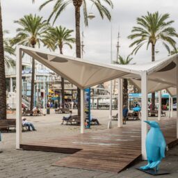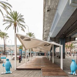 L’installazione, realizzata da UniCredit, main sponsor dell’Acquario, è stata ideata per offrire nei caldi mesi estivi una copertura ombreggiata a quanti sono in attesa di “immergersi” nel mondo marino.