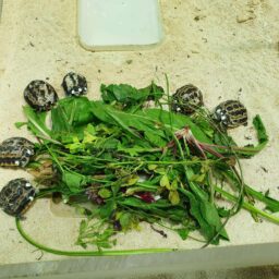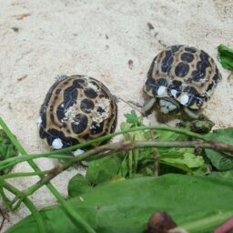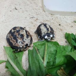 Pesano circa 10 grammi e sono poco più grandi di una moneta da 1 euro. Sono visibili lungo il percorso espositivo, nel terrario all’interno del Padiglione Biodiversità. Sotto la sabbia del terrario sono state già deposte nuove uova che schiuderanno il prossimo anno. Le tartarughe vengono cibate quotidianamente con verdure fresche, anche di campo, provenienti da colture biologiche.