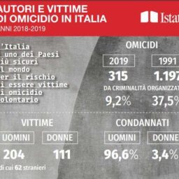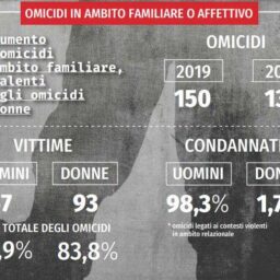 Un cambiamento che, nel corso degli anni, ha inciso soprattutto sul calo di casi di vittime maschili: nei primi anni Novanta si contavano 5 omicidi di uomini per ogni donna uccisa, nel 2019 si sono invece verificati 204 omicidi di uomini e 111 di donne.