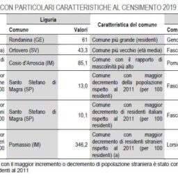 Sono solo alcune delle principali evidenze messe in luce dalle prime rilevazioni del censimento permanente della popolazione dell’Istat, che ha pubblicato oggi i dati relativi alla Liguria.