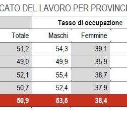 Sono solo 16 i Comuni nei quali gli occupati sono più della metà della popolazione