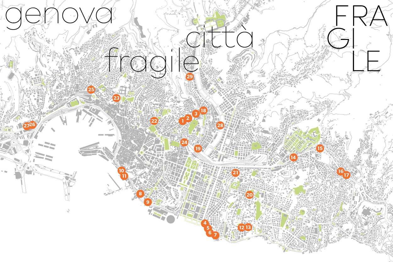 Una mostra a cielo aperto, centrata sulla fragilità urbana, organizzata e finanziata da Foage per la città di Genova, da scoprire con l’ausilio di una mappa e da condividere sui social con l’hashtag #genovacittàfragile per mettere in luce la fragilità urbana, ciò che del tessuto urbano rimane spesso in ombra e di cui bisognerebbe prendersi cura.