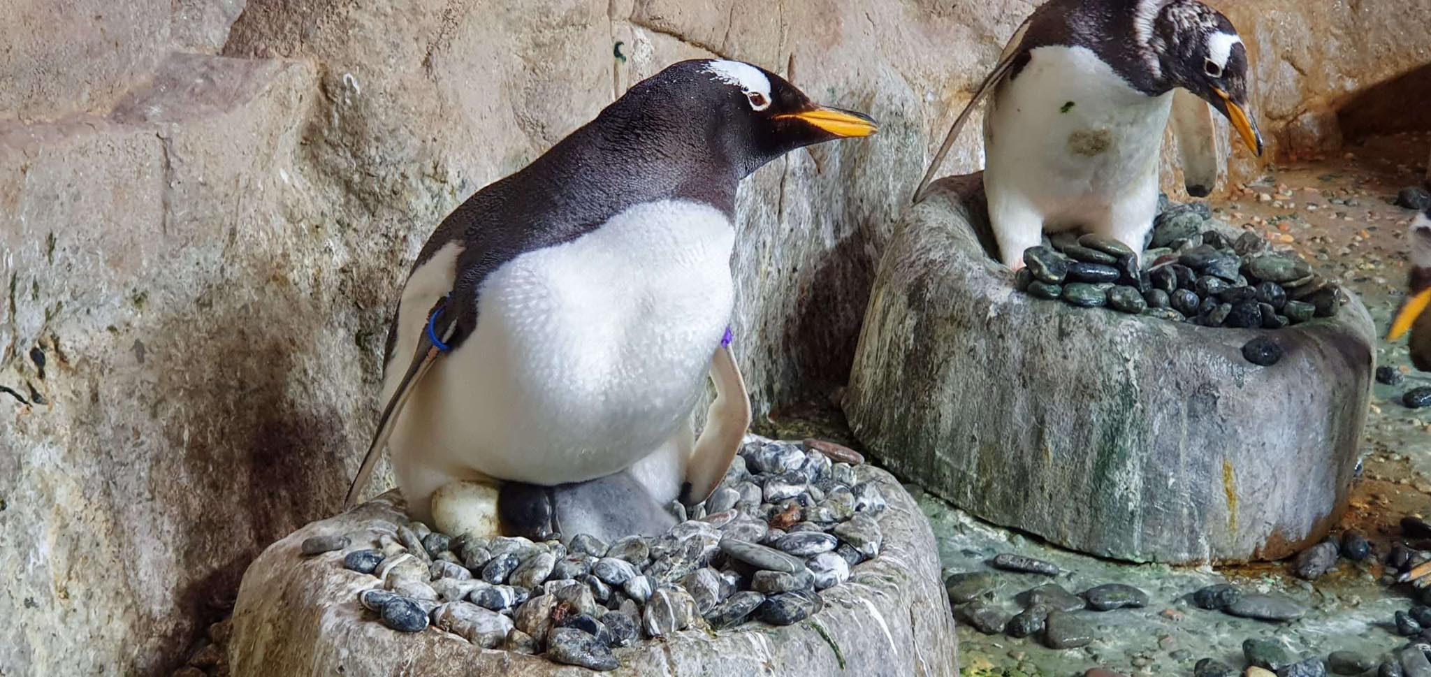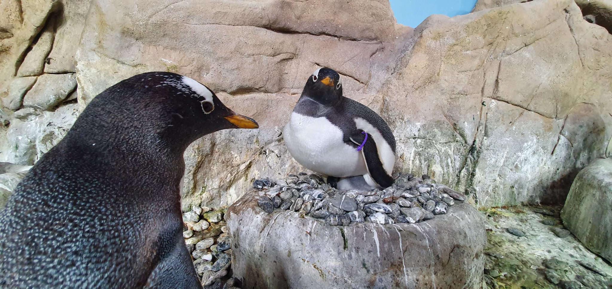 La vasca dei pinguini dell’Acquario di Genova ospita 12 pinguini Gentoo e 14 pinguini di Magellano, oltre ai pulcini appena nati. Il lato terrestre riproduce i due habitat delle specie ospitate ricreando le condizioni ideali per la riproduzione e l’allevamento dei pulcini.