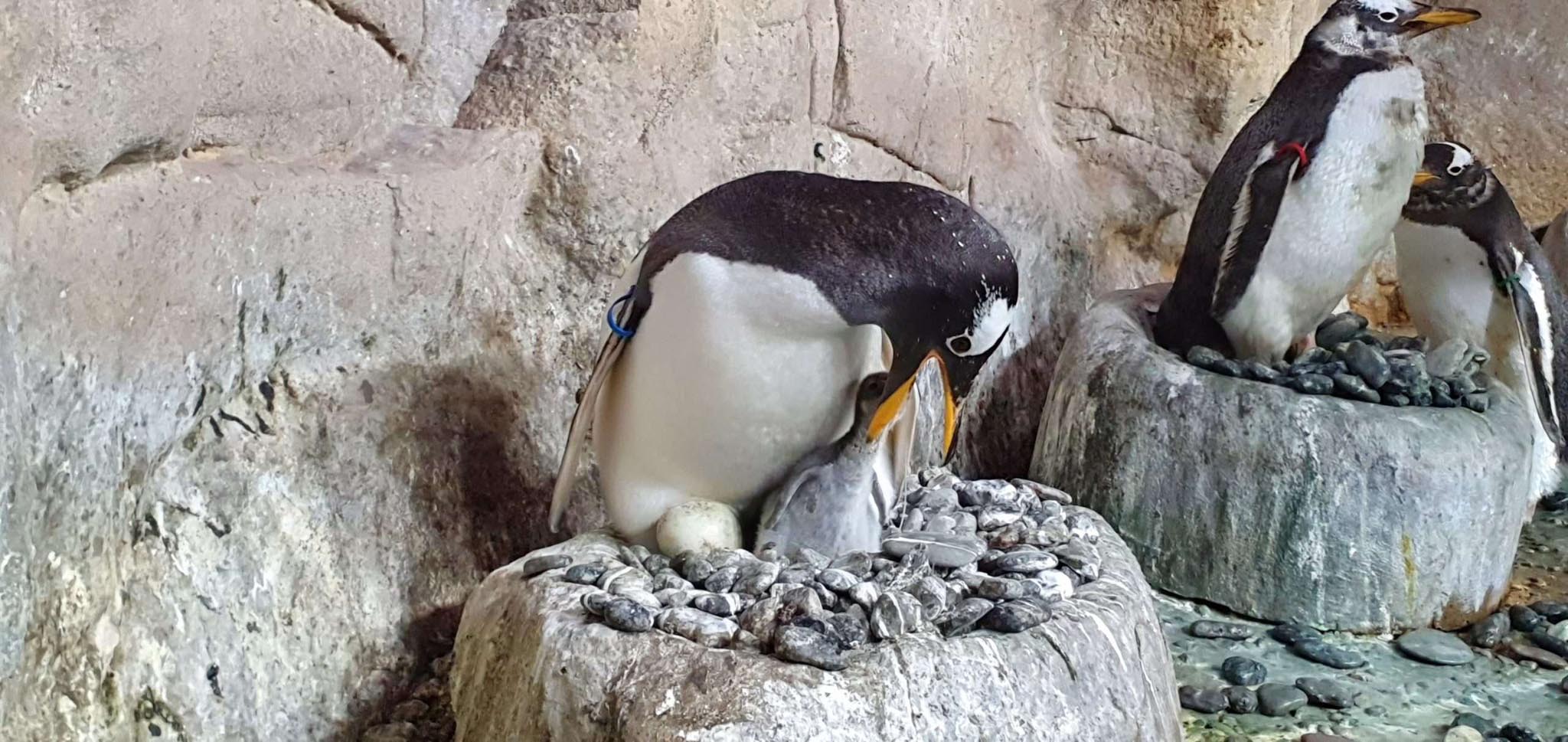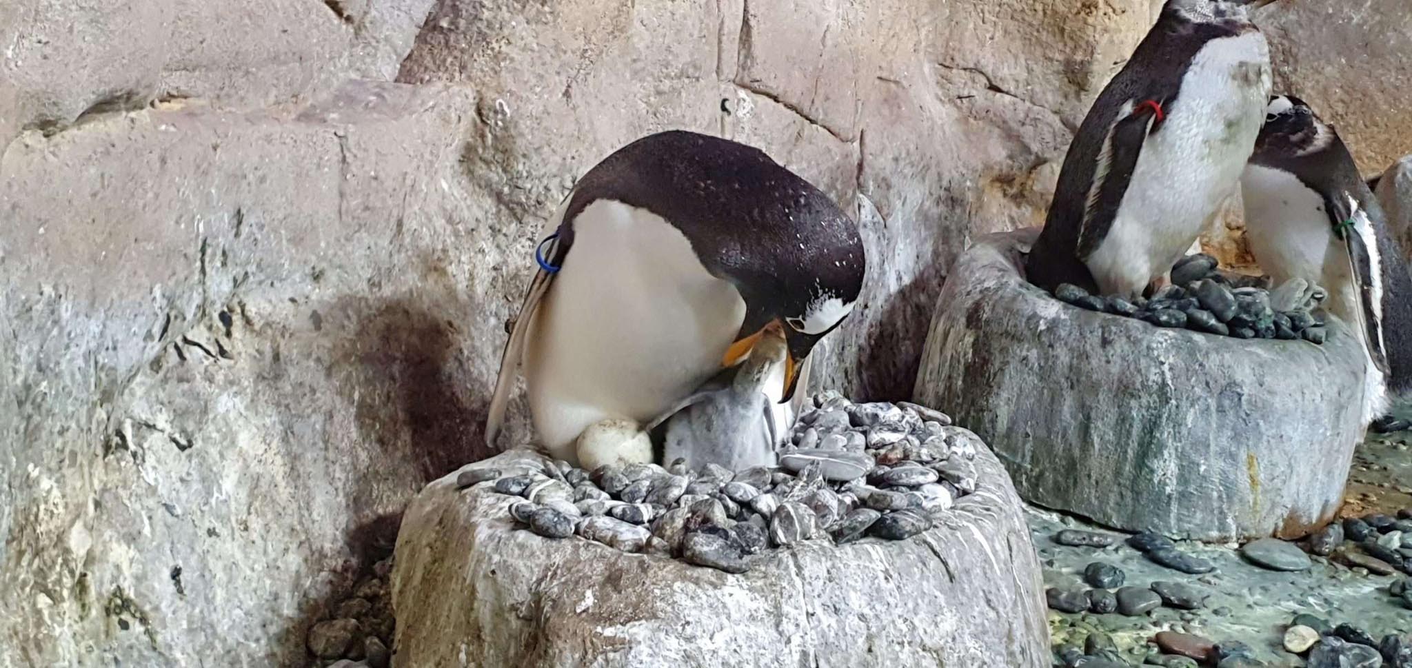 Nella vasca in queste settimane si sono schiuse anche tre uova di pinguino di Magellano (Spheniscus magellanicus) e i pulcini si trovano al momento nei rispettivi nidi, accuditi da mamma e papà. Non saranno visibili al pubblico fino al momento in cui usciranno dal nido, probabilmente nel mese di agosto.