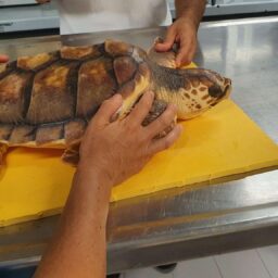 Prima di tornare in mare, come a tutti gli esemplari di Caretta caretta, viene inserito sottocute un microchip che consentirà, qualora l’animale venga ritrovato in altre occasioni, di acquisire dati preziosi sulla biologia e sul comportamento di questa specie (tasso di crescita, direttrici migratorie nel Mediterraneo e transoceaniche, ecc.) e una targhetta metallica sulla pinna come previsto dalle direttive ministeriali.