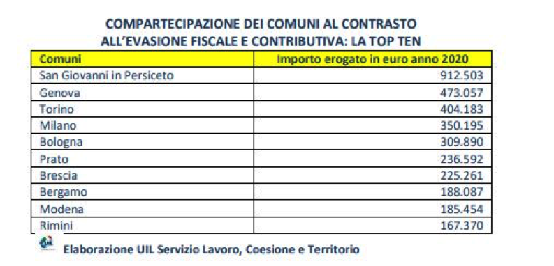 Un rallentamento che coinvolge tutti i Comuni analizzati: le somme loro spettanti per la partecipazione all’attività di accertamento fiscale e contributivo per l’anno 2020 ammontano infatti a 6,5 milioni di euro in diminuzione del 16,5% rispetto all’anno precedente.