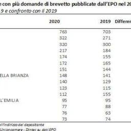 Con 1.506 brevetti, la Lombardia è la regione in cui più si concentra la capacità innovativa italiana; seguono l’Emilia Romagna (con 703 domande di brevetti), il Veneto (con 596) e il Piemonte (480). Milano, Torino, Bologna, Roma e Treviso sono invece le province che hanno presentato il maggior numero di brevetti.