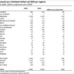 Secondo il report di Unioncamere, dal 2008 le invenzioni italiane protette a livello europeo sono state quasi 52 mila e per quasi l’80% si devono a soggetti (imprese, enti di ricerca e persone fisiche) residenti nelle regioni settentrionali.