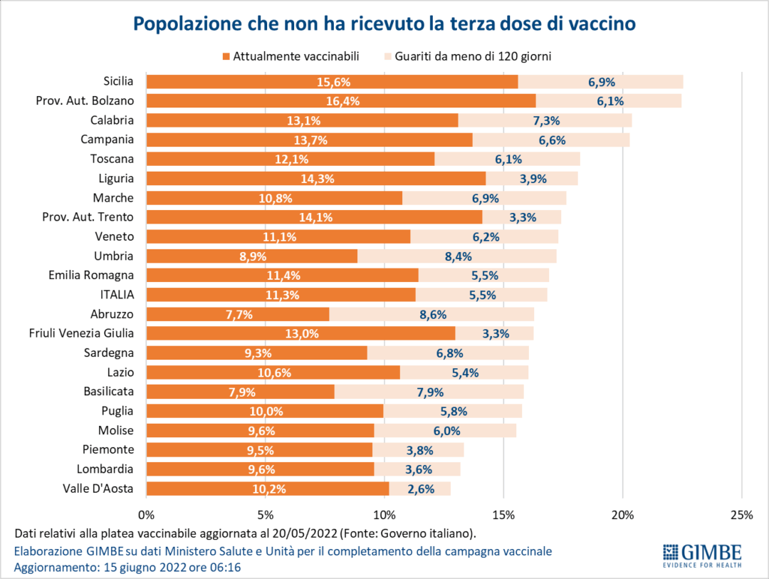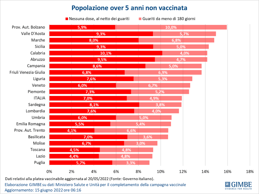 Gli over 5 anni non vaccinati sono circa il 13%: il 7,6% non ha ricevuto nessuna dose (al netto dei guariti), il 4% è guarito da meno di 180 giorni.