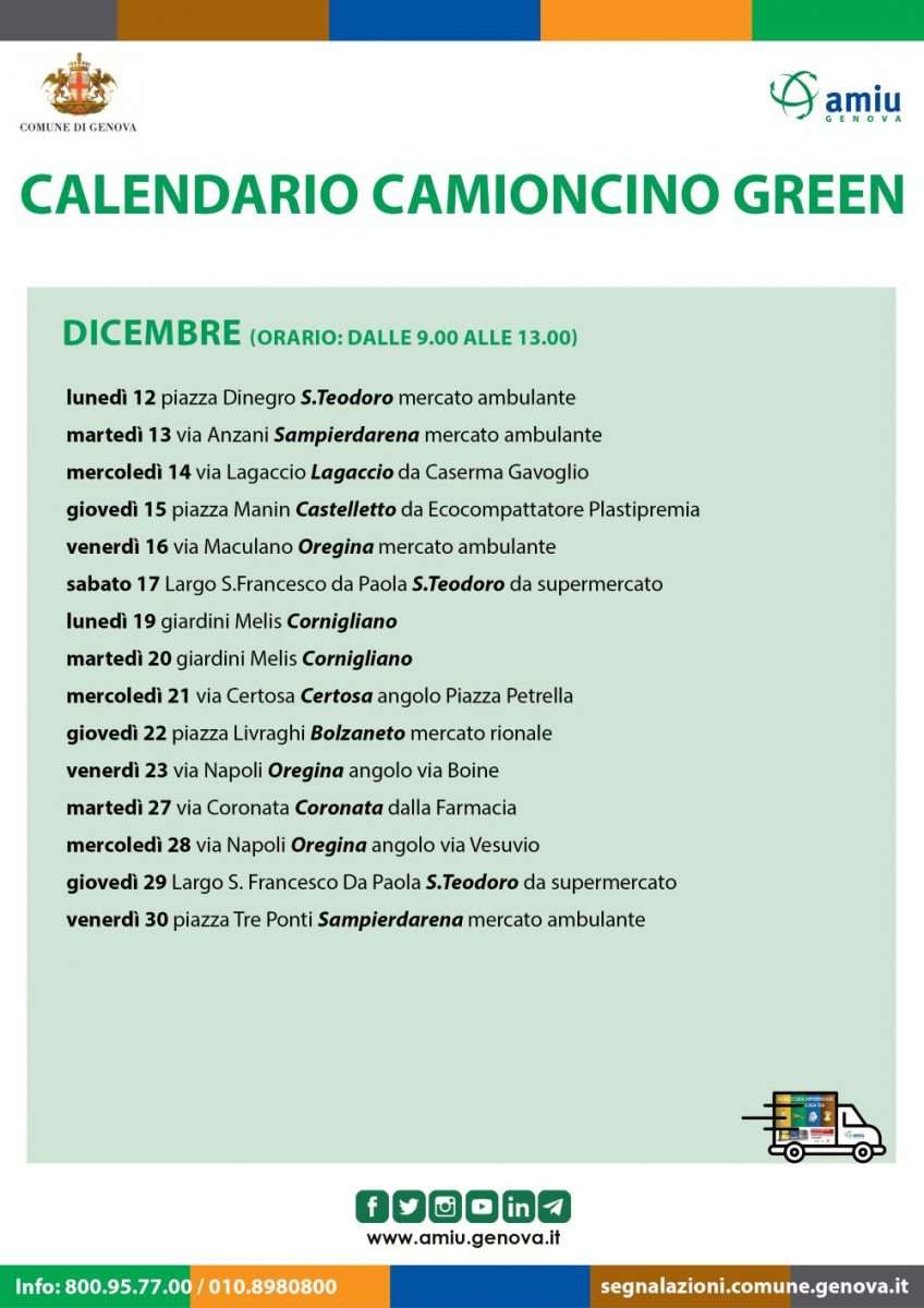 Amiu: da lunedì 12 dicembre il camioncino green nei municipi genovesi