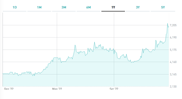 Nonostante la guerra in Ucraina e l’inasprimento dell’embargo nei confronti del mercato russo, Sanlorenzo (indice Ftse Italia Star), azienda di produzione di yacht, è riuscita a mantenere stabile la propria performance annuale perdendo solo lo 0,81%. Un recupero quasi costante dopo il crollo dell’8 marzo (azioni a 27,15 euro). Il massimo toccato quest’anno è stato 41,9 euro il 23 febbraio. A rassicurare gli investitori un portafoglio ordini pienissimo anche sui megayacht e numeri rassicuranti sul bilancio.