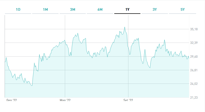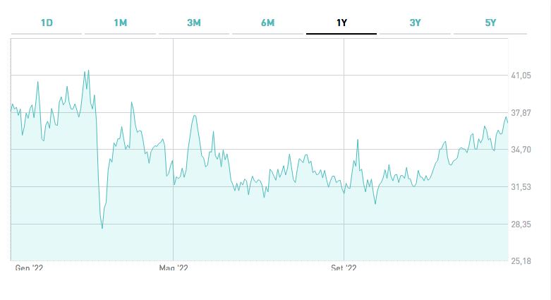 L’azienda di servizi, presente nell’indice Italia Small Cap, ha una performance annuale ampiamente positiva: +48,97%. Il massimo dell’anno è stato raggiunto il 4 maggio 2022 (1,275 euro), il minimo il 7 marzo 2022 (0,306 euro).