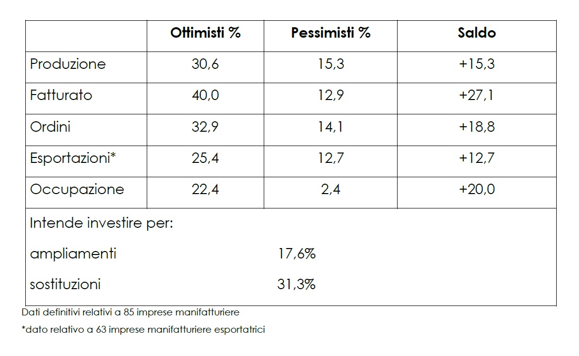 Pessimismo sull’andamento della produzione anche tra le aziende manifatturiere imperiesi. Ottimismo invece su un’espansione del fatturato: a ciò contribuisce sia l’effetto dei rialzi dei prezzi di listino, sia la fiducia su una ripartenza dell’export.