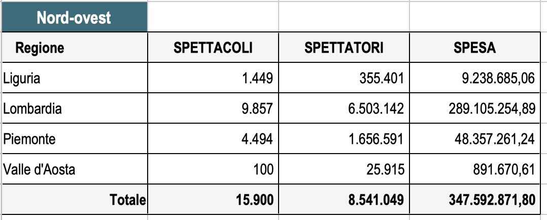 Su 862 eventi gli spettatori sono stati 1,3 milioni per una spesa di poco più di 17 milioni.