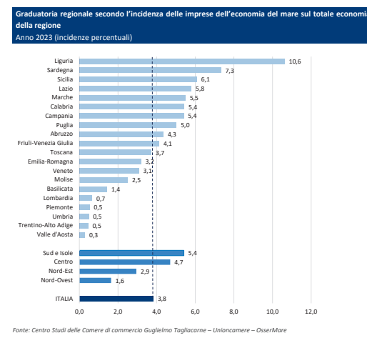 Per numero di imprese blu sul totale economia regionale, nel 2023 la Liguria è ancora una volta la prima in Italia, con un valore del 10,6%.