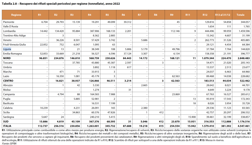 Andando ad analizzare quali regioni hanno ancora come rilevante lo smaltimento in discarica, c’è ancora la Liguria: in Valle d’Aosta (26,7%), Sardegna (23,6%), Liguria (12,6%) e Umbria (11,4%). In Liguria però si smaltiscono solo rifiuti non pericolosi e la percentuale di rifiuti smaltiti in questo modo che rappresenta il 5,1% del totale nazionale, si osserva una diminuzione del 18,6% (-92 mila tonnellate).