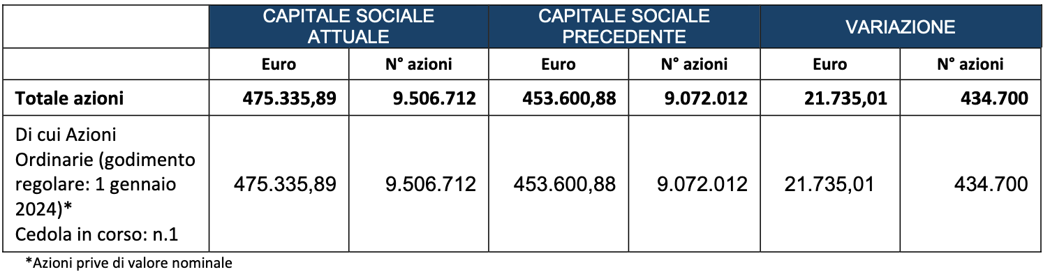 Redelfi spa, società a capo dell’omonimo Gruppo industriale con sede operativa a Genova, comunica la nuova composizione del capitale sociale risultante a seguito dell’aumento di capitale sociale a pagamento, con esclusione del diritto di opzione per un controvalore pari a 1.996.620 euro deliberato dal consiglio di amministrazione. Ecco la nuova composizione del capitale sociale (interamente sottoscritto e versato) dopo dell’attestazione di avvenuta variazione depositata presso il competente registro delle imprese: