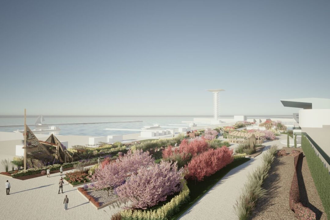Lungo il percorso saranno presenti anche quattro installazioni ispirate all’arte orientale, gli “Origami Verdi”, che arrivano a superare i 10 m di altezza e reinterpretano la figura della vela, del fiore di strelitzia e della rete da pesca per rappresentare il legame del territorio ligure con il suo mare. Altre installazioni permetteranno al visitatore di godere di una visuale dall’alto e d’insieme della manifestazione. «Alcuni elementi all’interno di questo percorso – spiega Fraschini – valorizzeranno l’esposizione e il racconto espositivo da un punto di vista elevato, in modo che io possa vedere dall’alto l’esposizione e i fiori: in particolare nell’area del Parco Kennedy con un “mirador fiorito” affacciato sul mare e nel Padiglione Blu, dove abbiamo immaginato un ponte a sezione variabile con una forma organica che lo attraversa per più di 100 metri».