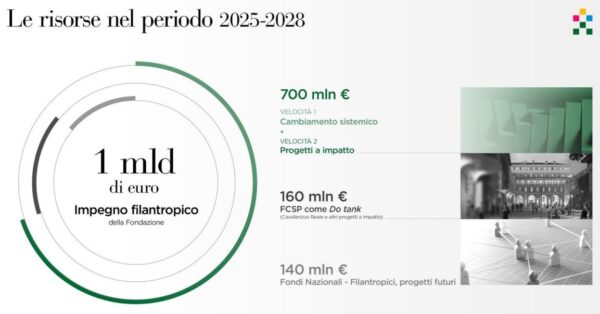 «Vogliamo migliorarci ogni giorno e per farlo abbiamo individuato quattro linee di metodo trasversali. Parlo di mobilitare risorse aggiuntive promuovendo azioni e investimenti congiunti con partner pubblici e privati anche internazionali; di rafforzare sempre il nostro ruolo di “learning organization”, di analizzare le nostre policy, sia per amplificare impatto, sia per promuovere iniziative su scala più ampia; e di attrarre competenze, talenti, progetti filantropici e investimenti anche a livello internazionale. La Fondazione intende così consolidare sempre di più il proprio ruolo di agente di trasformazione e innovazione», sottolinea Gilli.