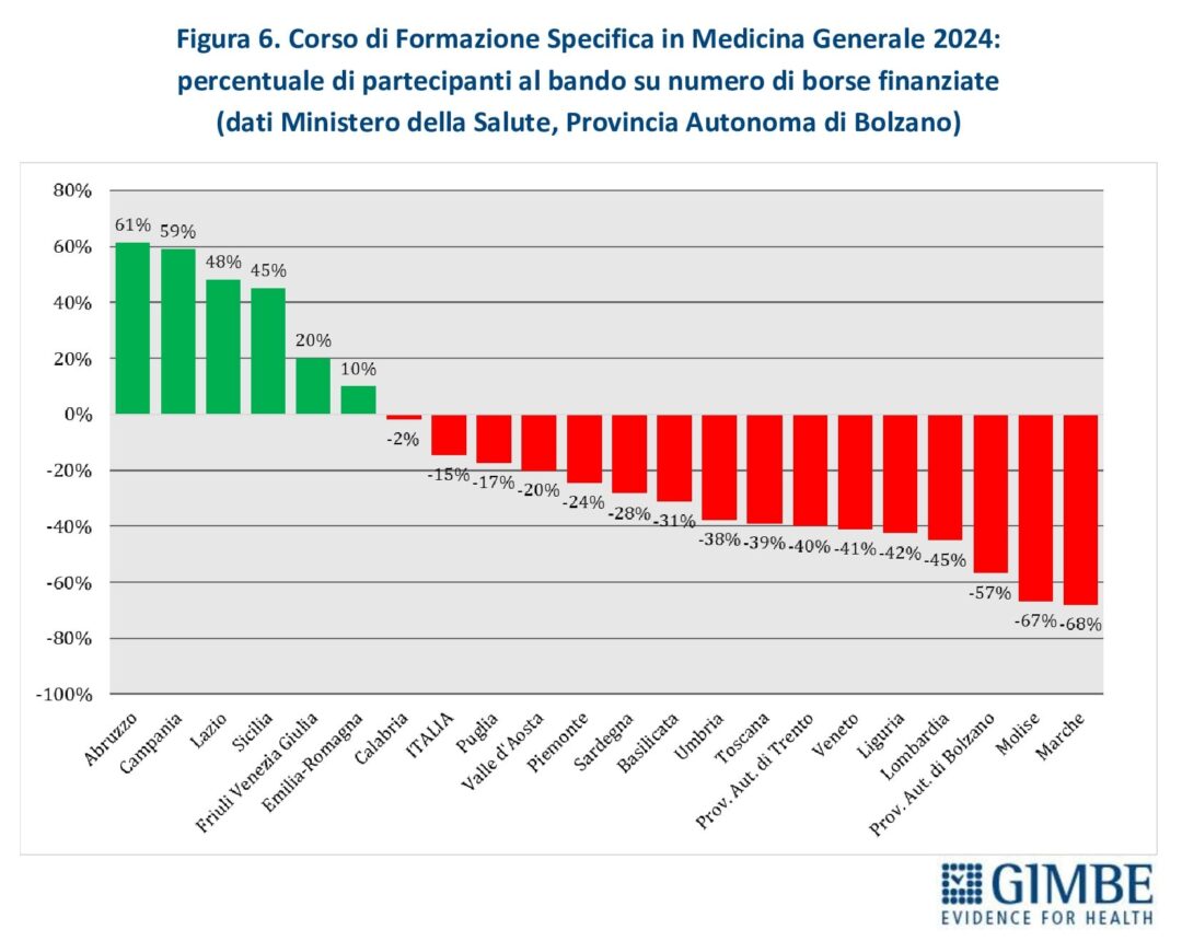 Dai dati forniti dal ministero della Salute risulta che nel 2024 i partecipanti al concorso nazionale per medici di base sono stati inferiori ai posti disponibili: 2.240 candidati per 2.623 borse, pari a 383 posti vacanti (-15%). La mancata presentazione di candidati riguarda anche la Liguria: all’ultimo corso di formazione specifica in medicina generale del 2024 hanno partecipato 28 studenti in meno rispetto alle borse di studio disponibili, che significa che il 42% delle borse finanziate in Liguria non sono state assegnate.