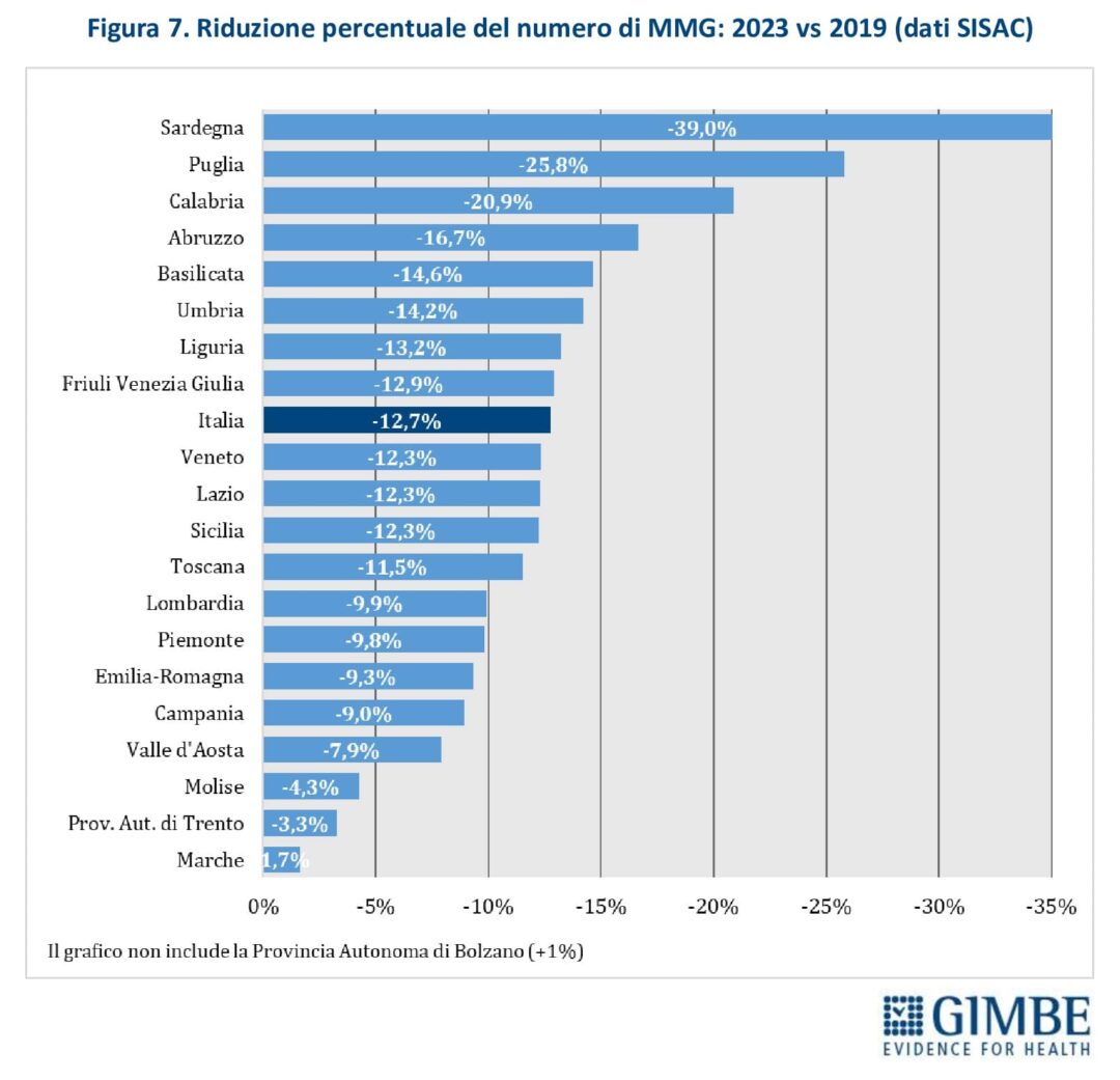 Tra il 2019 e il 2023 in Liguria il numero di medici di medicina generale è diminuito del 13,2% a fronte di una media nazionale del -12,7%. All’inizio dello scorso anno nella nostra regione mancavano almeno 112 medici di medicina generale, mentre la carenza a livello nazionale è di 5.500 unità. È quanto emerge dall’ultimo report della Fondazione Gimbe che ha analizzato dinamiche e criticità normative che regolano l’inserimento dei Medici di medicina generale nel Sistema sanitario nazionale, stimando l’entità della loro carenza nelle Regioni italiane.