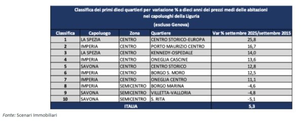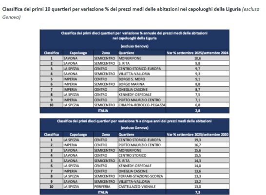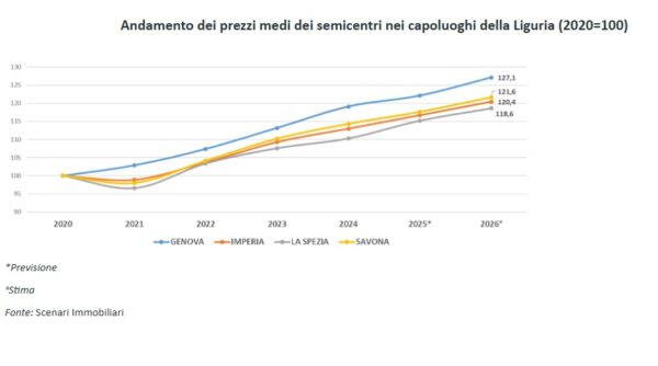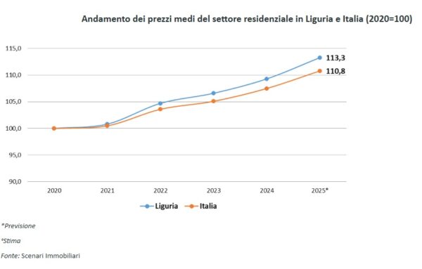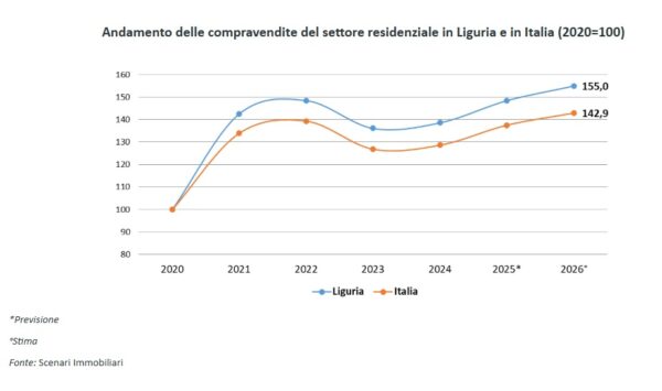 Ciò porta a stimare un numero di compravendite di immobili residenziali nel mercato ligure, a chiusura del 2025, pari a circa 30.000 unità, che coprono a livello nazionale quasi il 4% del totale, quantificabile in 770mila transazioni.