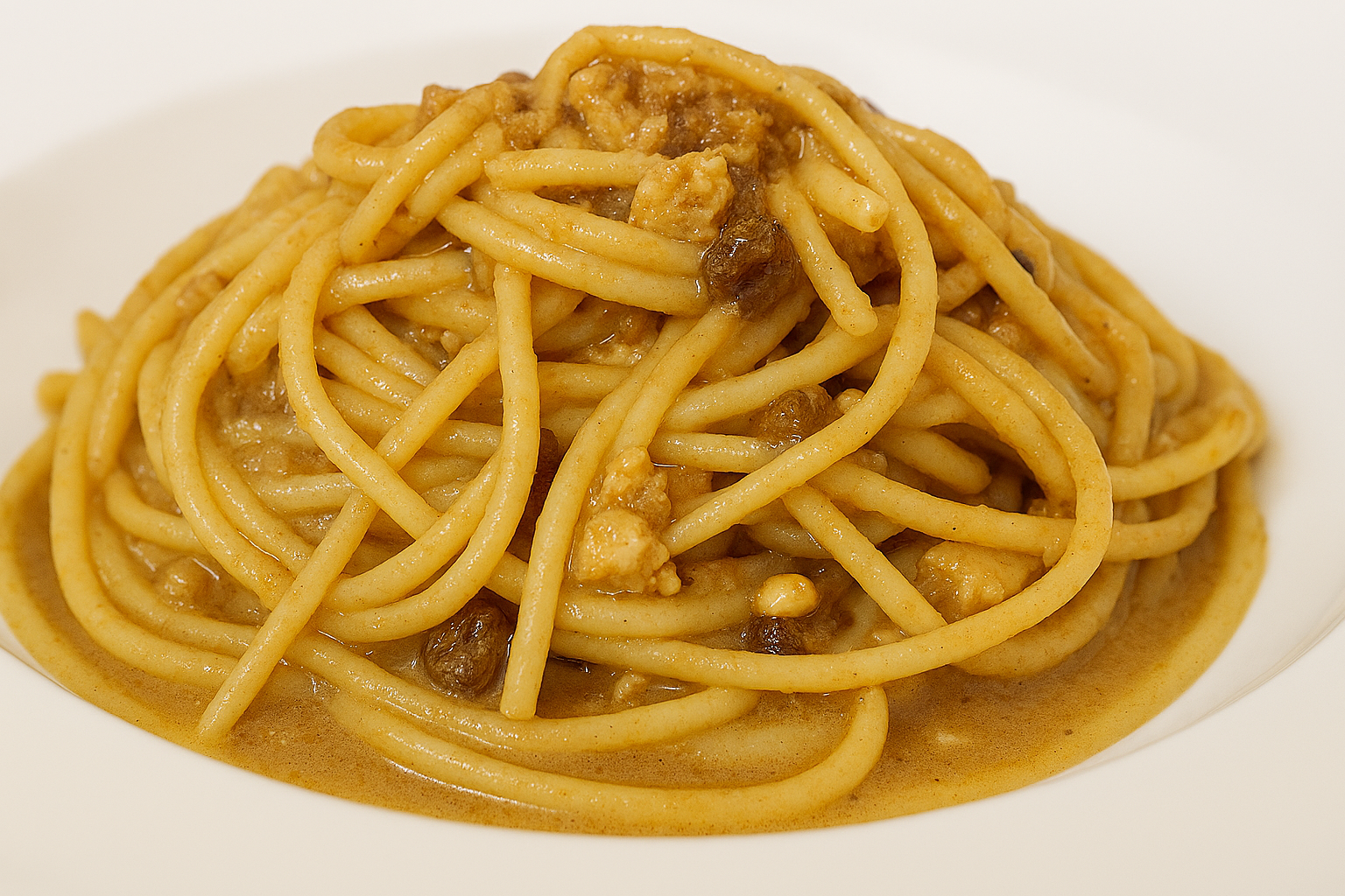 Una ricetta ligure probabilmente antica, come fanno pensare l’utilizzo di un ingrediente povero, la mancanza di pomodoro e la presenza di uva passa. Comunque, antica o non antica, questa ricetta ci fornisce un ottimo ragù di pesce, diverso dai soliti. Proviamo a farlo anche noi.