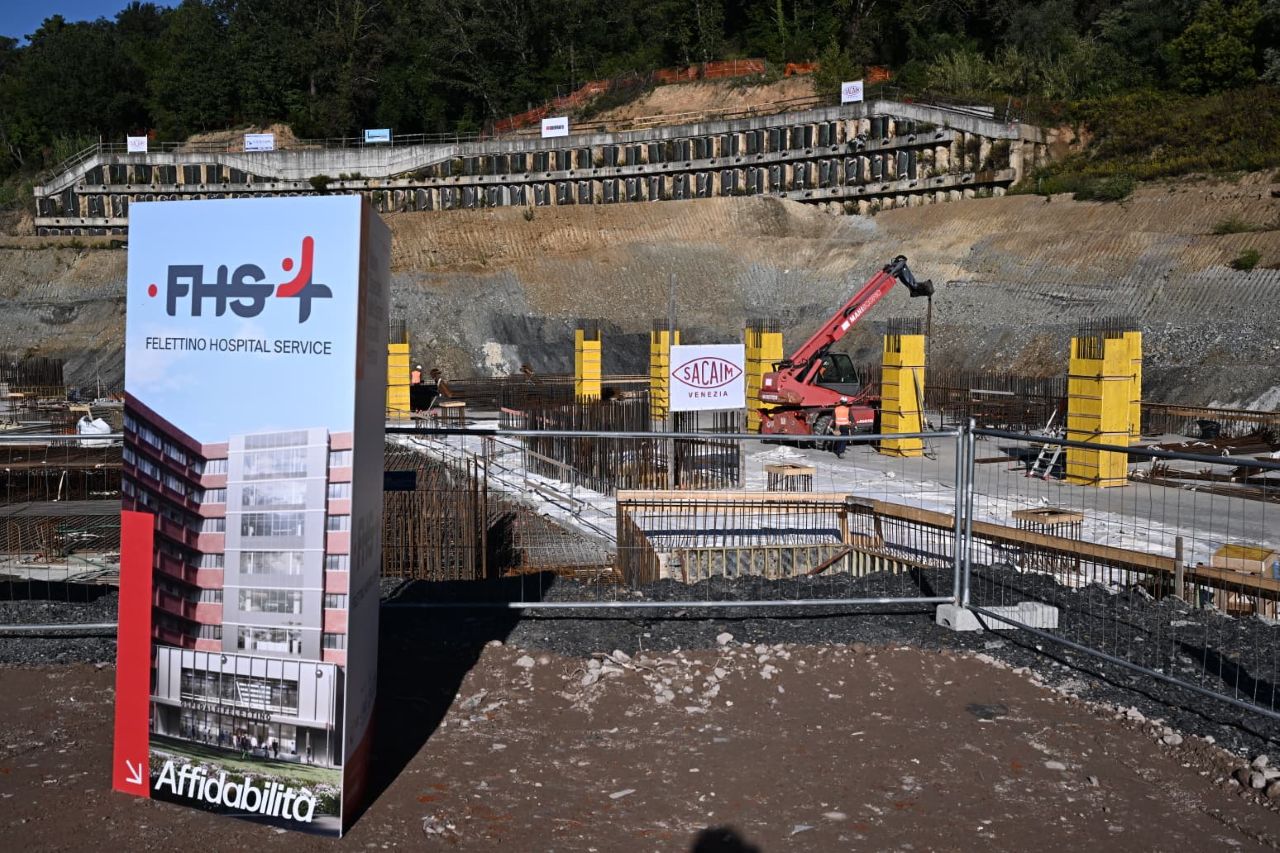 Dall’inizio dei lavori a oggi sono state ultimate le attività di scavo e conferimento del terreno roccioso nelle cave del territorio per un volume di circa 80.000 m³, nel rispetto delle procedure di gestione delle terre e rocce da scavo come autorizzate dagli enti competenti. A maggio è stata avviata la realizzazione della platea di fondazione del corpo ospedaliero composta da n° 4 stecche a raggiera oltre ad un corpo centrale di collegamento per complessivi 9.000 mq. Allo stato attuale sono state completate 3 stecche ed entro la prima decade di novembre saranno interamente completate le opere di fondazione. È stata avviata anche la posa degli acciai e la casseratura dei pilastri del piano interrato. Entro la fine dell’anno si prevede: