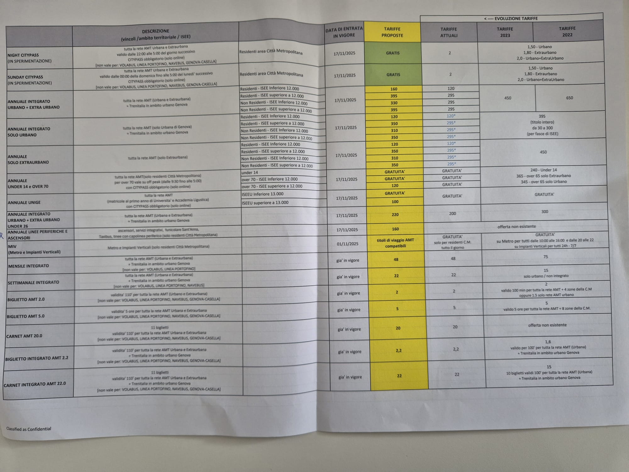 Tra le novità che entreranno in sperimentazione, i residenti della Città Metropolitana di Genova potranno viaggiare gratis sui mezzi Amt tutte le domeniche (Sunday Citypass) e tutte le notti (dalle 22 alle 5, Night Citypass). Ritocchi all’insù per gli abbonamenti urbani ed extraurbani e per quelli integrati.