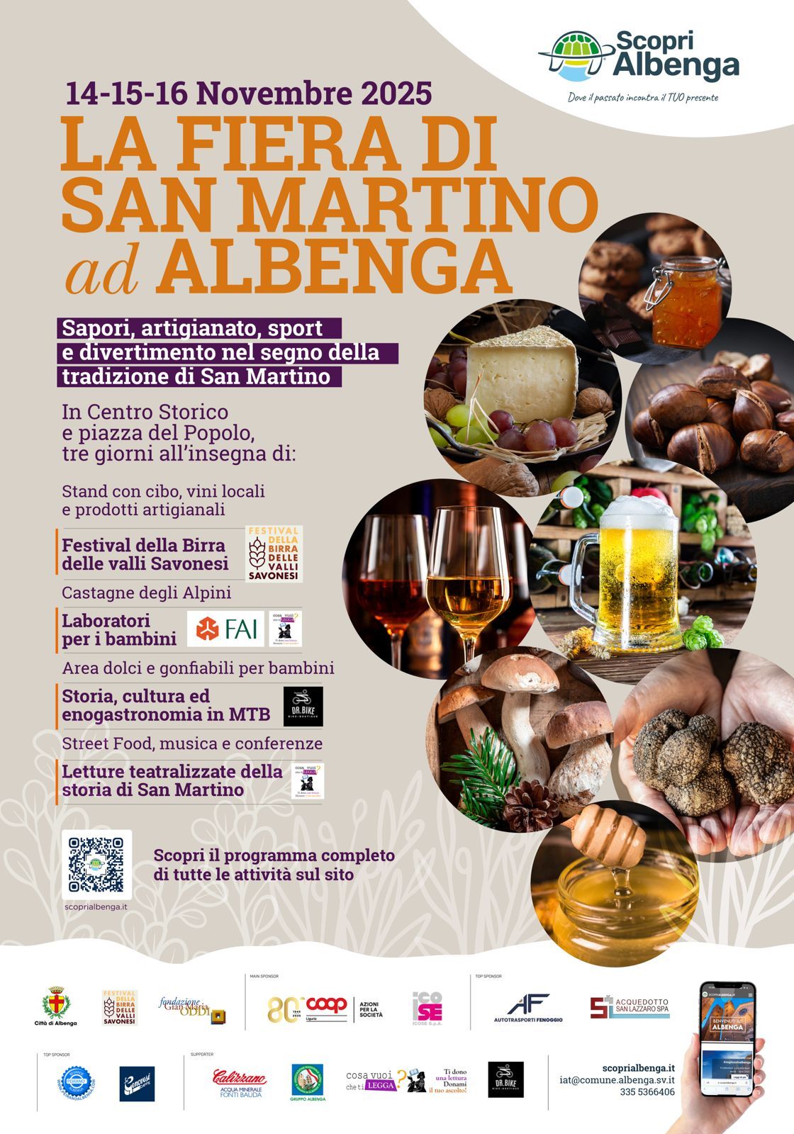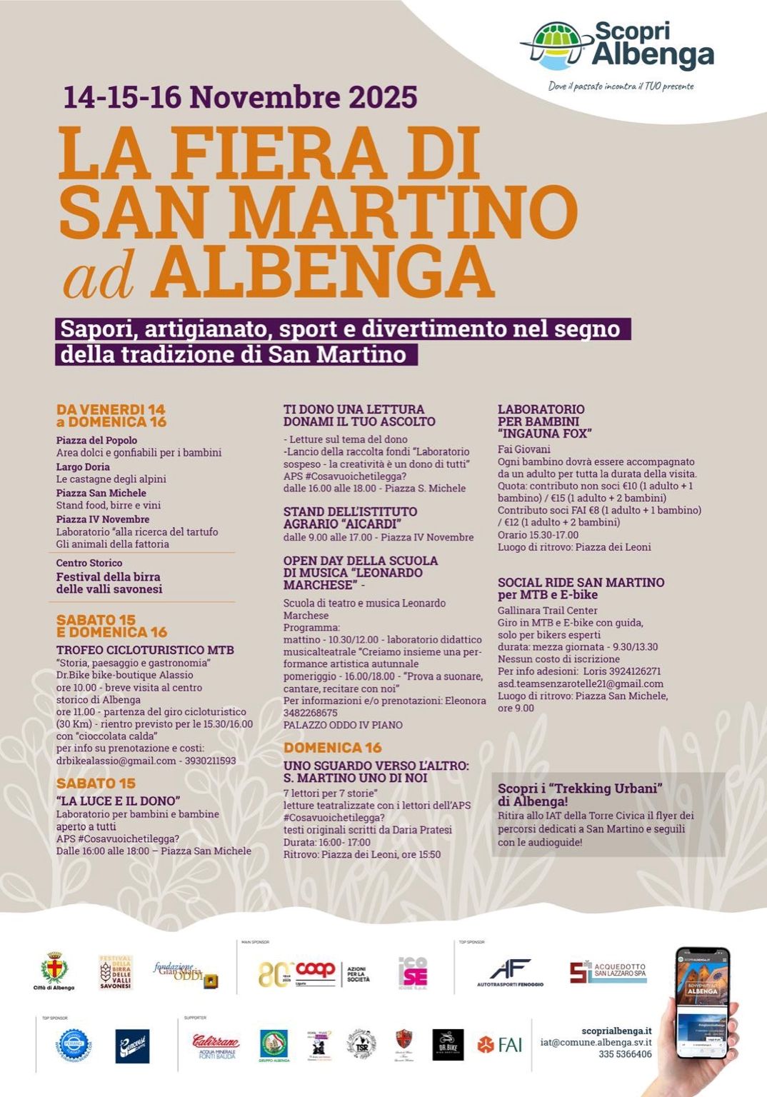 Per informazioni sulla Fiera di San Martino 2025: iat@comune.albenga.sv.it – 335 5366406, scoprialbenga.it e canali social FB e IG @scoprialbenga.