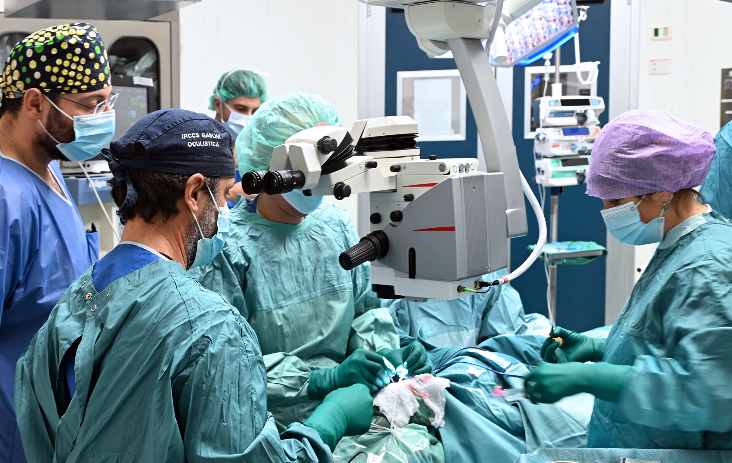 L’équipe dell’Oculistica dell’Istituto Gaslini, in sintonia con la Chirurgia Maxillo-Facciale dell’Ospedale Policlinico San Martino, ha recentemente eseguito un delicato e raro intervento di neurotizzazione corneale su un bambino di due anni affetto da agenesia (ovvero l’assenza) del V nervo cranico di destra. Si tratta del primo intervento in Italia di questo genere a essere realizzato su un paziente così giovane. L’intervento è fondamentale in quanto tale malformazione priva la cornea del normale nutrimento nervoso provocando conseguentemente ulcere corneali neurotrofiche ricorrenti con rischio di perdita permanente della vista. L’obiettivo dell’intervento è stato reinnervare la cornea sfruttando i nervi sensitivi dell’altro lato del volto, nella prospettiva di ripristinare una funzione visiva il più possibile simile a quella di un coetaneo sano. L’intervento si è svolto senza complicanze e la rigenerazione nervosa è già iniziata; oggi il paziente sta bene ed è stato dimesso, verrà seguito con controlli cadenzati per i prossimi mesi. Occorreranno circa tre mesi per valutare la ripresa funzionale delle fibre nervose.