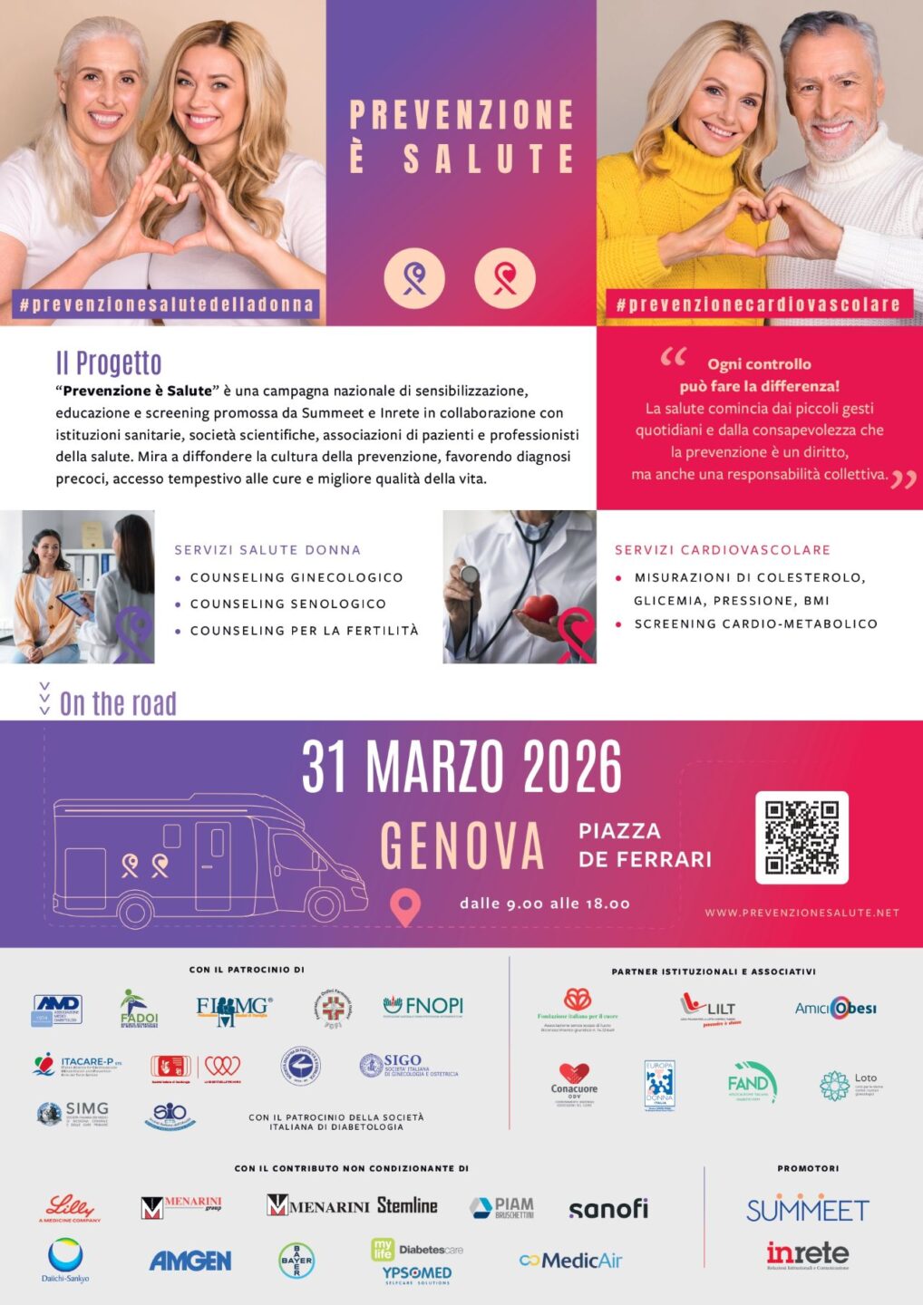 Martedì 31 marzo in piazza De Ferrari di Genova arriverà “Prevenzione è salute”, campagna nazionale dedicata alla prevenzione in ambito cardiovascolare, cardiometabolico e di salute femminile, con screening ed educazione alla salute.
